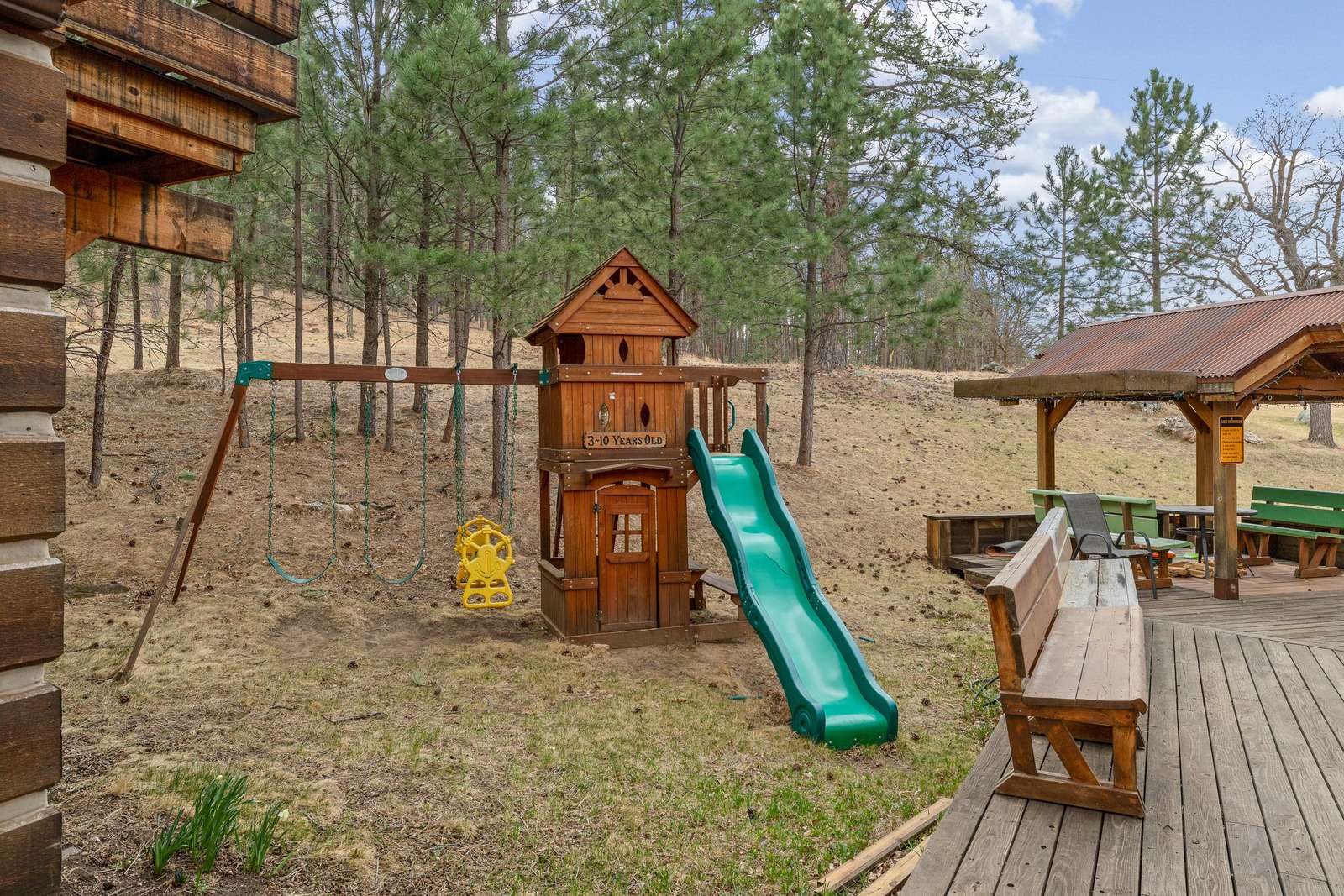McDonald Mountain Ranch is in a very convenient location. Center Lake is nearby, which is a swimming/fishing lake with picnic tables, barbeque grills, showers, and restrooms; located 2 miles away from the ranch. The Black Hills Historic Playhouse is also within a few miles. The beautiful Iron Mountain Hiking Trail is right around the corner. The Wolf Camp outdoor restaurant, which serves barbeque ribs, burgers, pizza, etc., is 1/2 mile away. The entrance to Custer State Park is also right around the corner.
