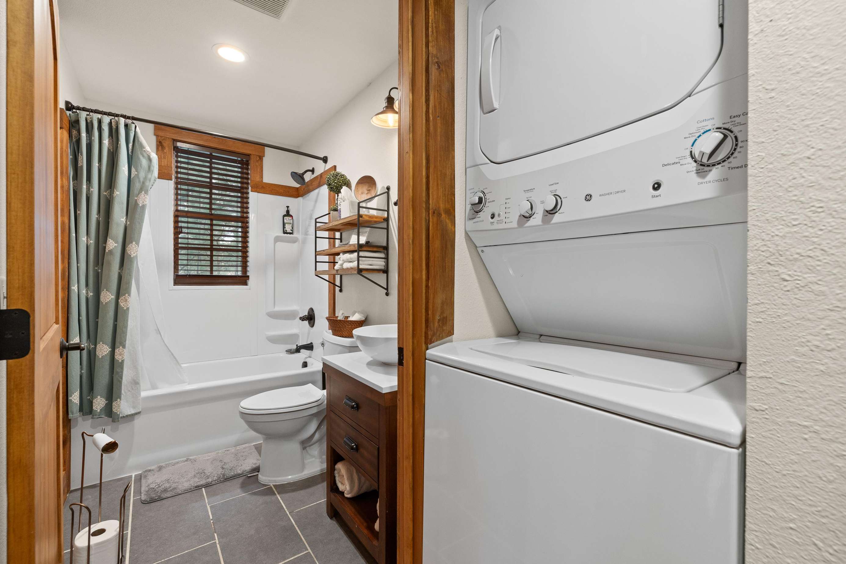 The Carriage House provides an in-cabin washer/dryer, as well as fully stocked cooking facilities. We have access to free Wi-Fi, a 32″ Roku smart TV, central air conditioning and heating, and outdoor dining facilities with a propane grill. (We supply the propane.)